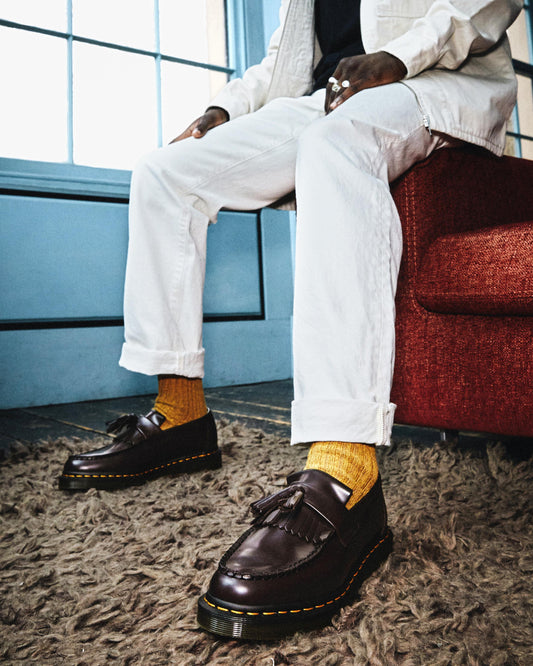 Adrian Yellow Stitch Smooth Leather Tassel Loafers in Burgundy